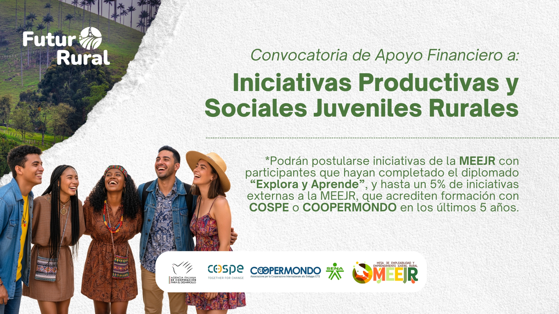 La iniciativa, financiada por la Agencia Italiana de Cooperación para el Desarrollo (AICS) e implementada por las organizaciones italianas COSPE y COOPERMONDO, con el apoyo del Servicio Nacional de Aprendizaje – SENA, busca fortalecer al menos 60 iniciativas juveniles rurales mediante la entrega de recursos económicos, acompañamiento técnico, formación y asesoría personalizada.